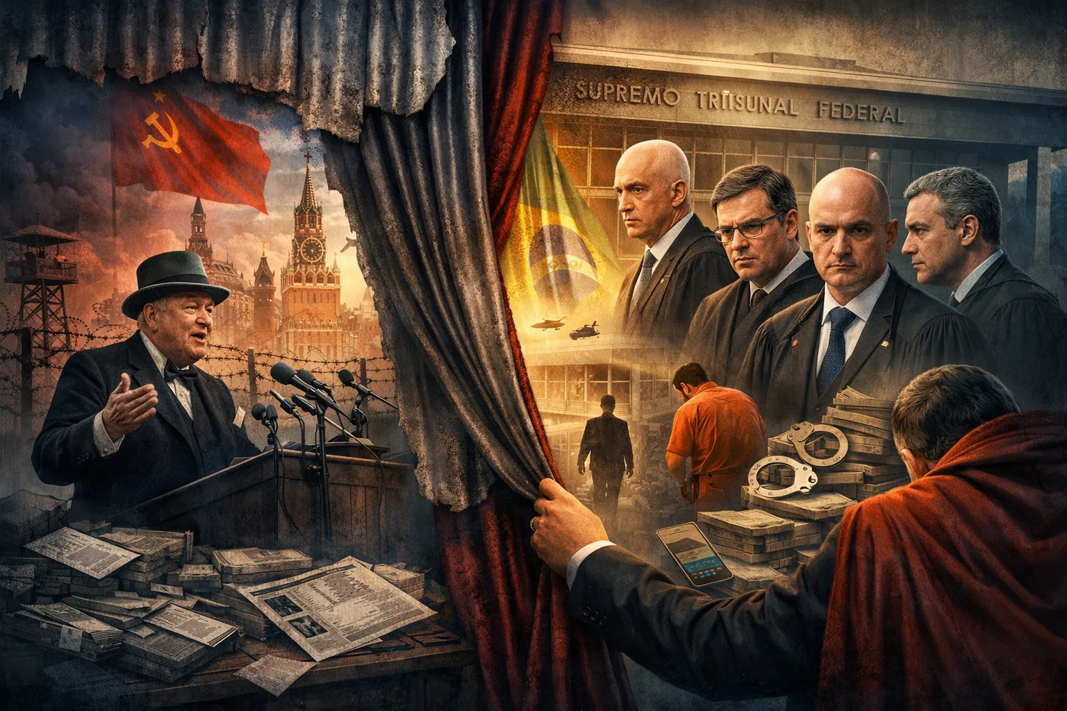 Entre metáforas históricas da Guerra Fria e as recentes investigações no Brasil, cresce o debate sobre transparência, poder institucional e os bastidores que ainda permanecem ocultos na política nacional.